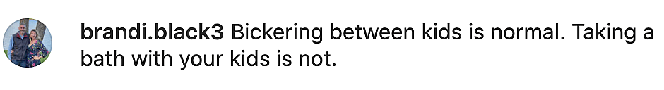 Another wrote, “Bickering with your kids is normal. Taking a bath with your kids is not.”