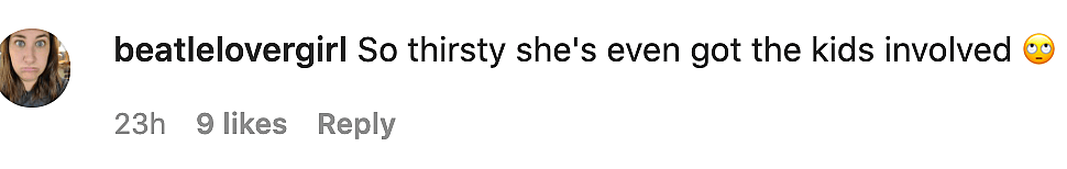 “So thirsty she’s even got the kids involved,” commented another disgusted person.