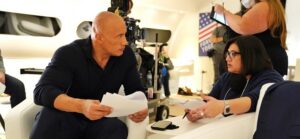 A few hours later, Johnson posted a series of snaps of him working with “Young Rock” creator, writer, and director Nahnatchka Khan.