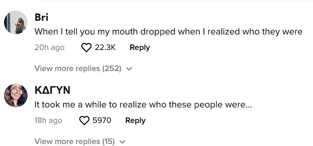 “When I tell you my mouth dropped when I realized who they were,” one person commented.
