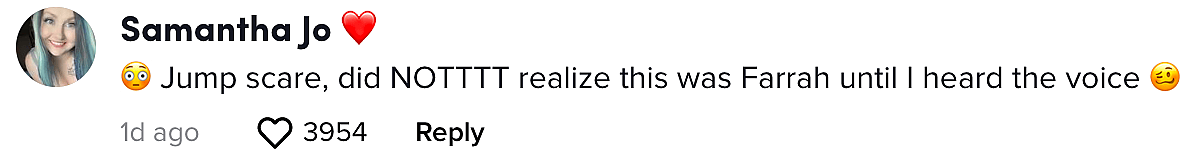 “Jump scare, did NOTTTT realize this was Farrah until heard the voice,” one of the many comments read.