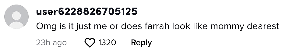 “Omg is it just me or does Farrah look like mommy dearest,” someone else replied.