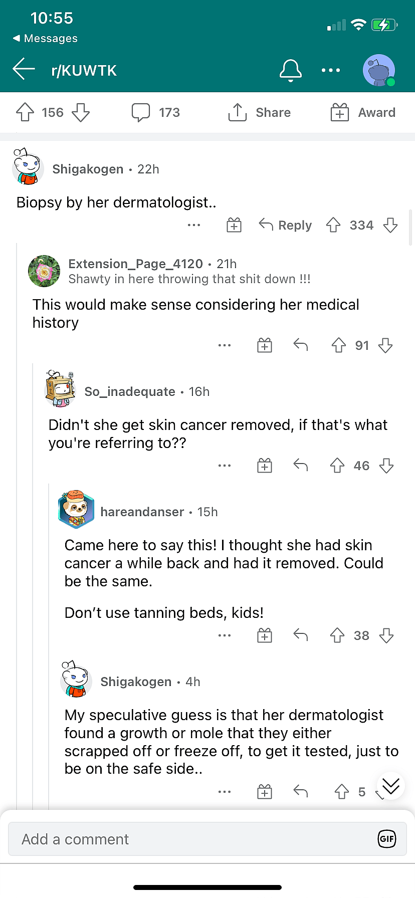 “A biopsy by her dermatologist…” one person wrote.