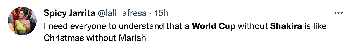 One wrote, “I need everyone to understand that a World Cup with Shakira is like Christmas without Mariah.”