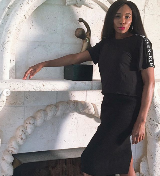 Venus kicked off her post with a pose that’s often used to make the big announcement. The star had been photographed by a white stone fireplace while in quarantine, seen shooting the camera a knowing gaze as she flaunted her super-fit body in a look that was both relaxed and curve-hugging. A black t-shirt from Venus’ EleVen clothing was offsetting a skintight black skirt showing off the athlete’s curves.