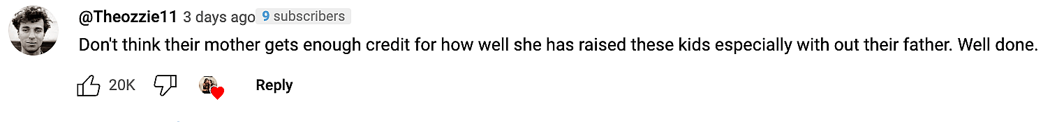 “Don’t think their mother gets enough credit for how well she raised these kids especially without their father. Well done,” one fan wrote.