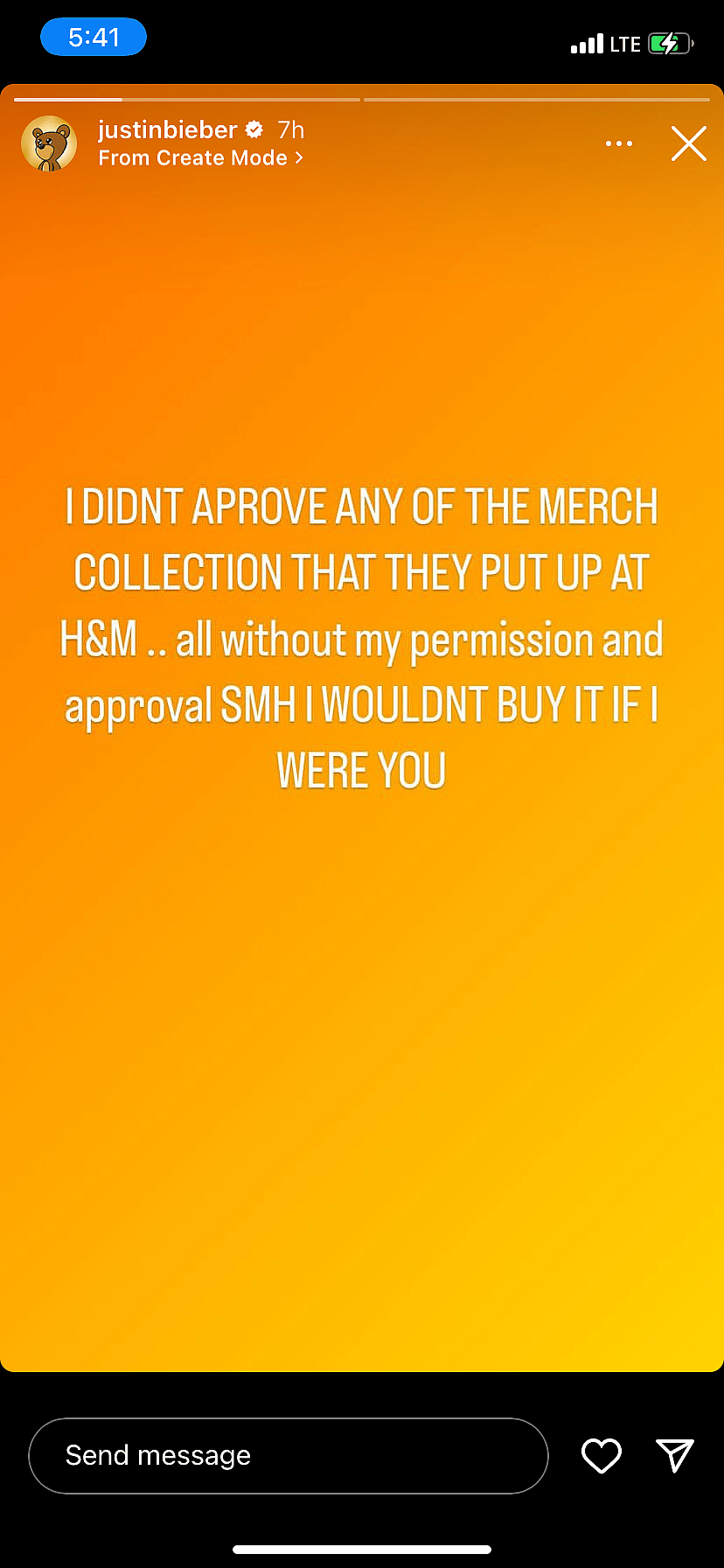 “I DIDN’T APPROVE ANY OF THE MERCH COLLECTING THAT THEY PUT UP AT H&M.. all without permission and approval. SMH I WOULDN’T BUY IT IF I WERE YOU,” he wrote on his Instagram Story.