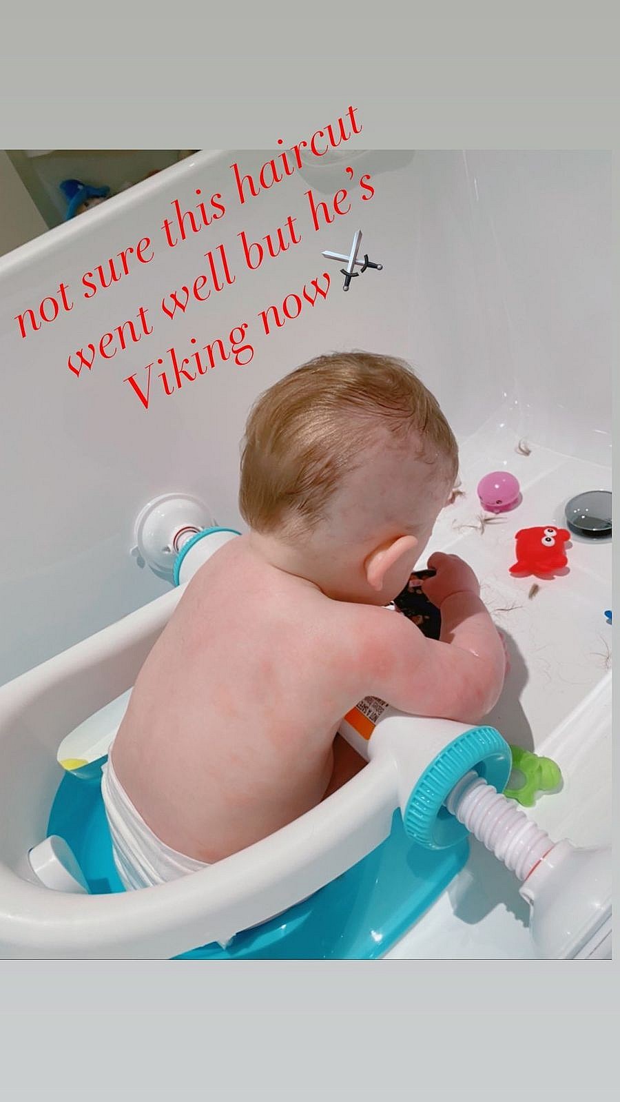 “Not sure this haircut went well but he’s Viking now,” she wrote across the butchered results.