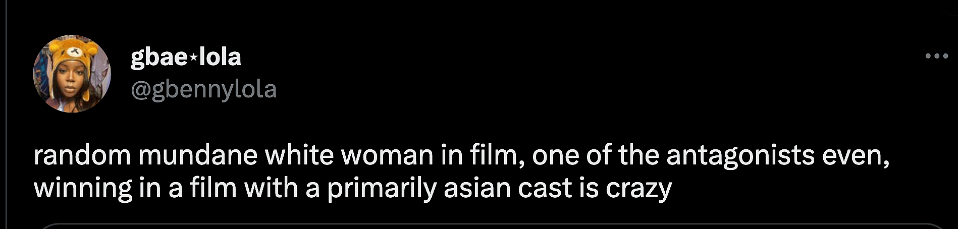 They further asked, “can any of you tell me what the F**K Jamie Lee Curtis did in everything everywhere”???? Another wrote, “Stephani Hsu AND Angela Bassett losing to f**king Jamie Lee Curtis. You cannot make this shit up.”