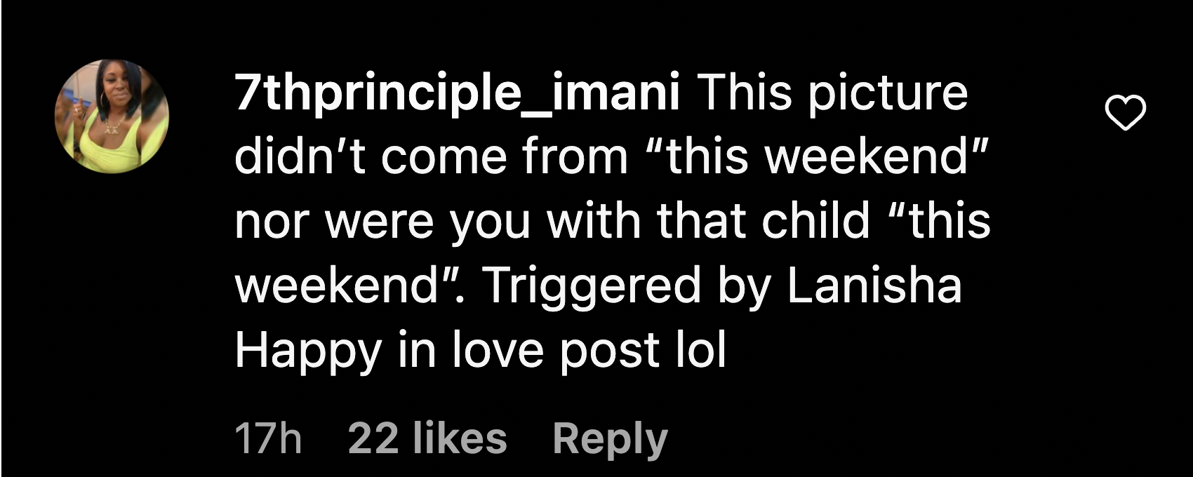“This picture didn’t come from ‘this weekend,’ nor were you with that child ‘this weekend.’ Triggered by LaNisha’s Happy in Love post, lol,” the person claimed. More critics supported the speculations about the 42-year-old’s poor relationship with his daughter.