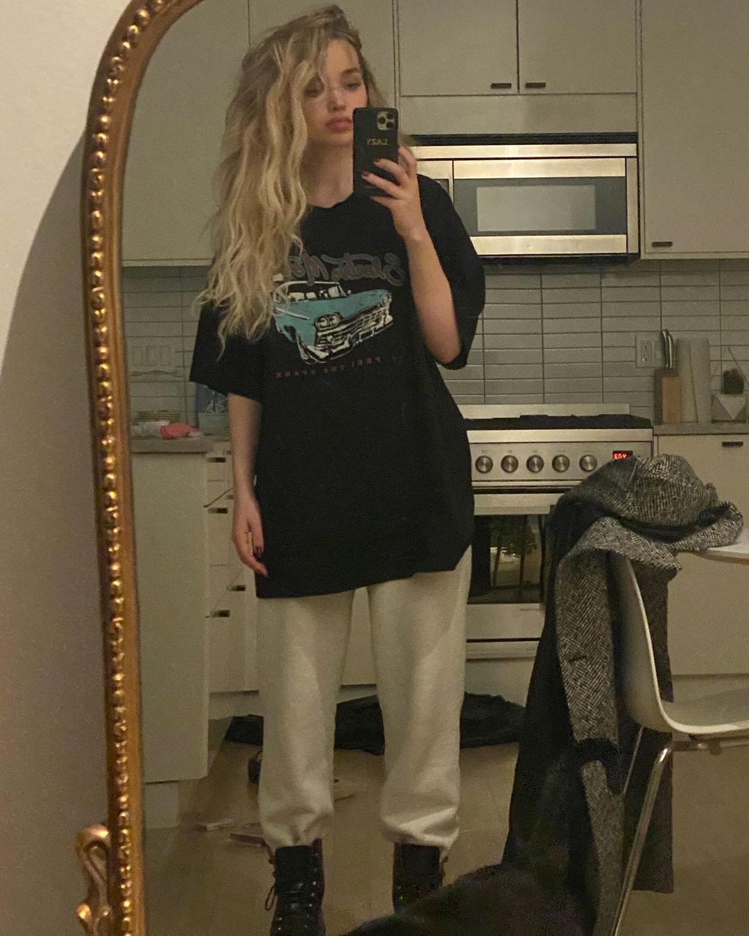 “I just got these insane alien stomper boots sent to me by Swear London. They’re vegan leather and they truly look like they shouldn’t exist for another 100 years. I’m trying not to wear them every day. They make me feel like myself.”