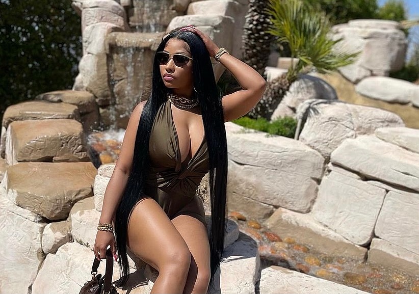 In this latest round of Instagram photos, Nicki is seen in a jumpsuit with a pair of Christian Louboutin heels. She is also joined by her husband, Kenneth Petty. Mr. Petty was seen in a t-shirt, shorts, and a pair of all-white Louboutin sneakers. The two were sitting in a bench on a sunny day as Nicki had another Chanel bag with her, as this one was all-pink. This photo appeared to be taken at their home as a field of grass is also seen in the background.