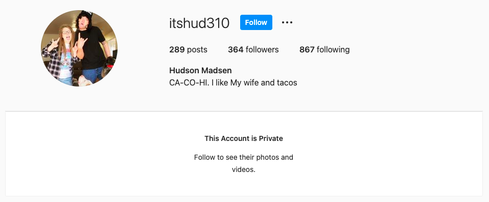 Hudson’s Facebook page shows that he was married to Carlie Madsen, and lived in Wahiawa, Hawaii. He had over 1k friends, and loved posting images of him and his wife as profile pics.