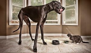 Other dogs are curious about Zeus too. The world’s biggest dog reportedly plays well with smaller dogs, but Brittany said that bigger dogs see him as a threat and often start barking when he draws near.