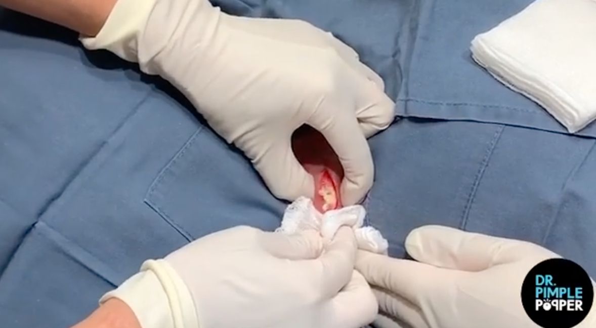 In the video, you can see Dr. Pimple Popper reaching for a “punch” which is an instrument that punctures a hole in the skin. But, after you see this video you will see why it was necessary.