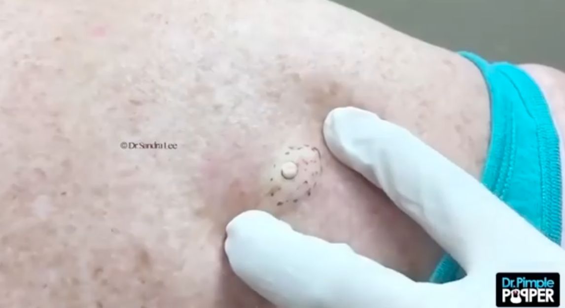 Dr. Pimple Popper is popping a blackhead that looks like it has been growing inside of this person’s body for decades.