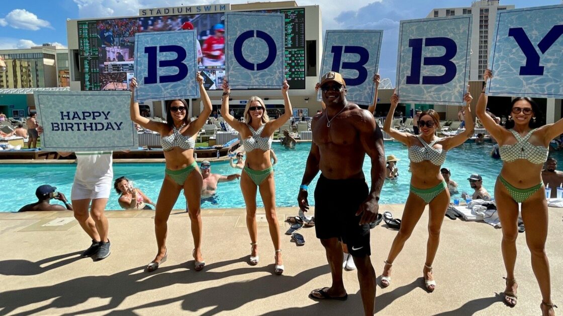 The next day, Bobby was seen partying at Stadium Swim in a private cabana. The venue’s beautiful cocktail servers surprised Bobby with an exciting presentation to wish him a happy birthday.