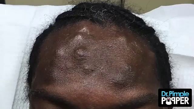Dr. Pimple Popper is in the direct line of first when she is squeezing out a massive cyst, but it’s not always that the insides squirt all over her uniform…but luckily for us, it happens on this one!