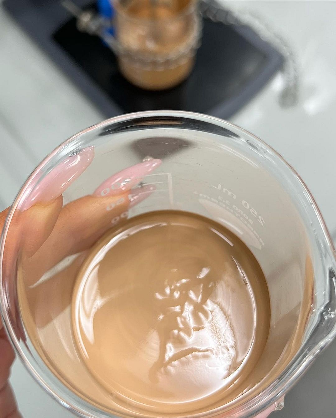 In one video, you can clearly see Kylie sans gloves mixing together from one beaker to another.