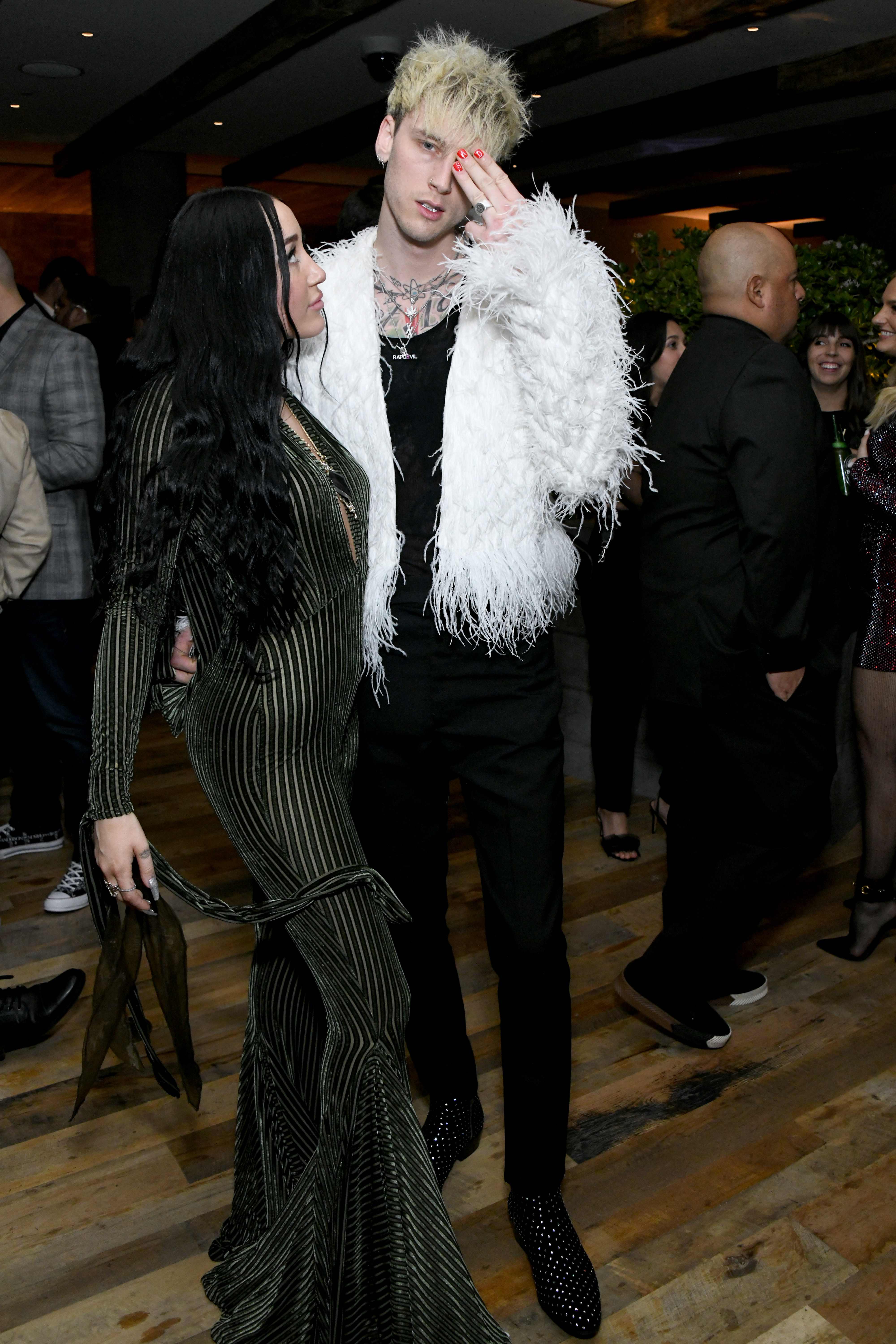 MGK kept Noah close all night, holding her hand and embracing her during photo-ops. While at the parties, the rumored couple chatted up stars like singer Pia Mia in the VIP section and went outside together for a smoke break.