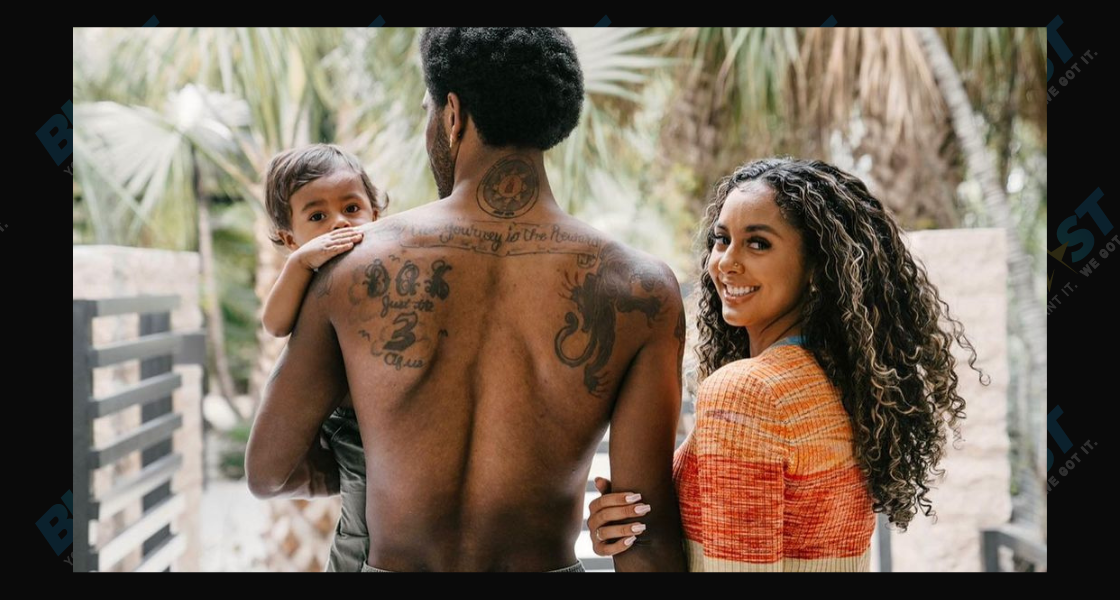 Anyone following Brooklyn Nets star Kyrie Irving or his fiancé Marlene Wilkerson on Instagram know that they’ve kept their baby boy away from the spotlight. The now 1-year-old has made his Instagram debut today in a post on Irving’s page dedicated to his fiancé. And one particular photo in the carousel of snaps has fans wondering if there might be another NBA baby on the way.