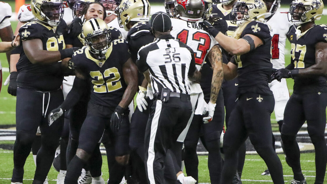 This is not the first time Mike Evans and Marshon Lattimore have gotten into it on the football field. In 2017, the wide receiver blindsided Lattimore on the Buccaneers’ sideline. Evans was not ejected from that game, but he did receive a one-game suspension.