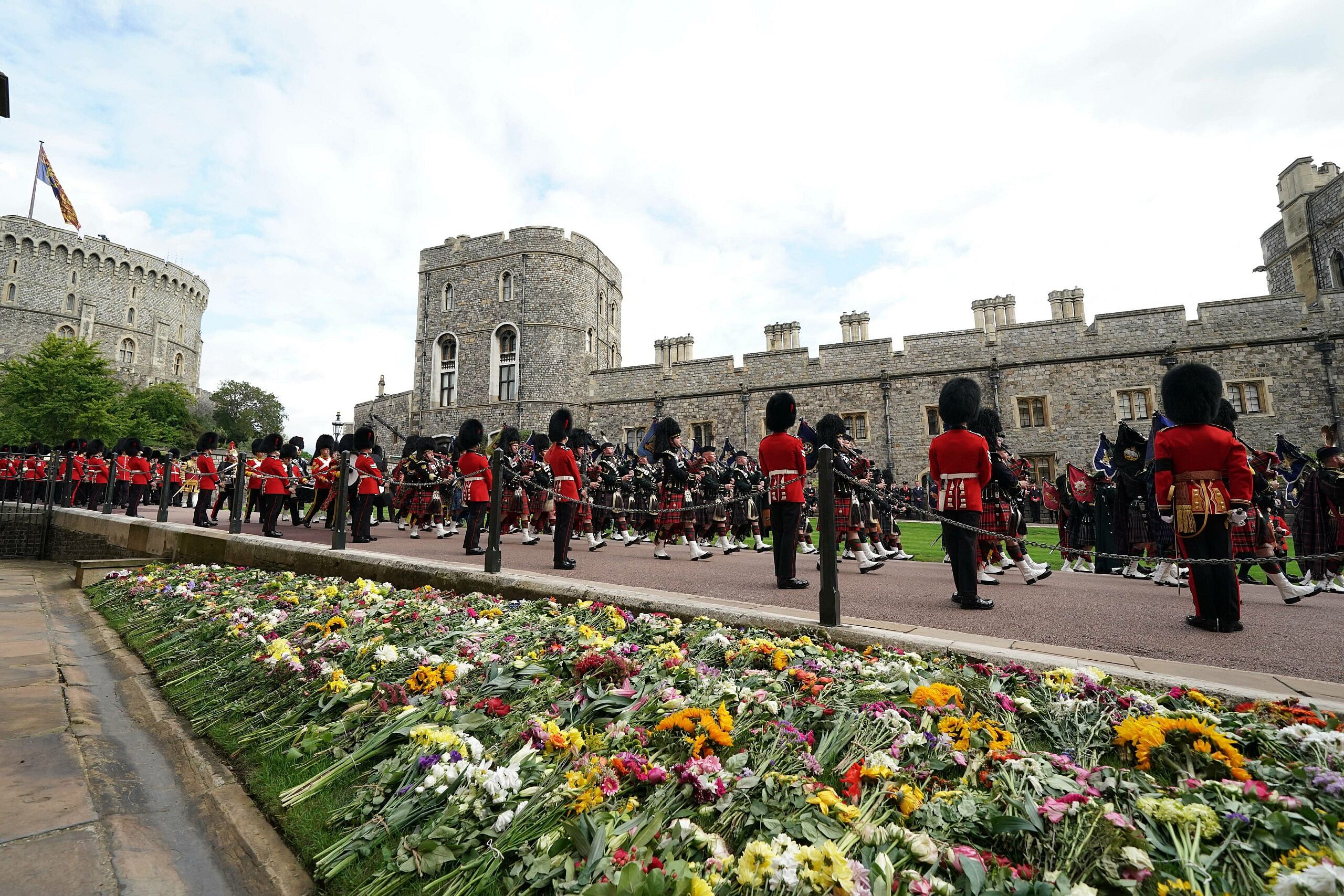 Her Fell Pony, Emma, also greeted the procession while standing on grass among the floral tributes along the Long Walk.
