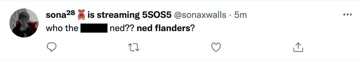 “Who the f**k. is ned?? Ned Flanders?” another person asked.