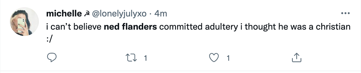 “I can’t believe Ned Flanders committed adultery, I thought he was a Christian :/” someone else joked.