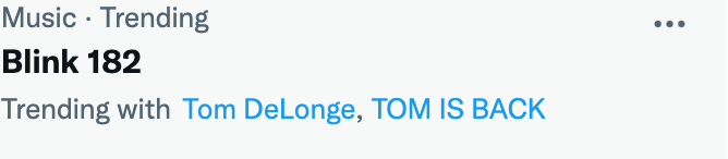 Tuesday morning “Blink 182” along with “Tom DeLonge” and “TOM IS BACK” were trending on Twitter.