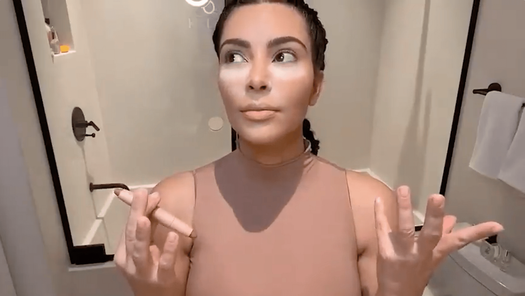 That’s exactly what Kim Kardashian attempted to do when she snuck into the guest bathroom to do a snappy makeup tutorial for her 165 million followers on Thursday. But her massive mansion proved not to be big enough when her oldest child found her and totally interrupted her “me time” over and over again. First, North West came into the bathroom and asked her mommy, “Can I wash my hands?” to which Kim responded by telling her to use another bathroom. Her exact words were: “Can you do it in the other room? I don’t want to get this all wet, sweetie.”