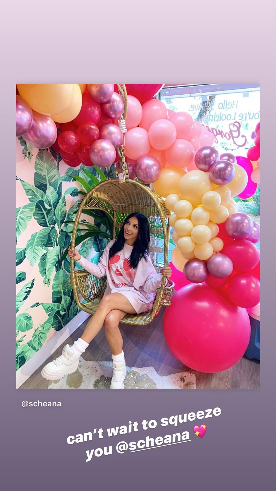 While Ariana Madix isn’t in town to be there physically for her best friend, she made sure to let Scheana Shay that she was thinking about her in her time of need. Taking to Instagram Story directly after her podcast aired on Friday, June 26, the blonde beauty posted a smiling photo of Scheana and lent her support. Showing the “Pump Rules” star wearing a pink sweatshirt while sitting in a swinging chair with different shades of pink balloons around her, Ariana Madix wrote, “Can’t wait to squeeze you,” while tagging her BFF.