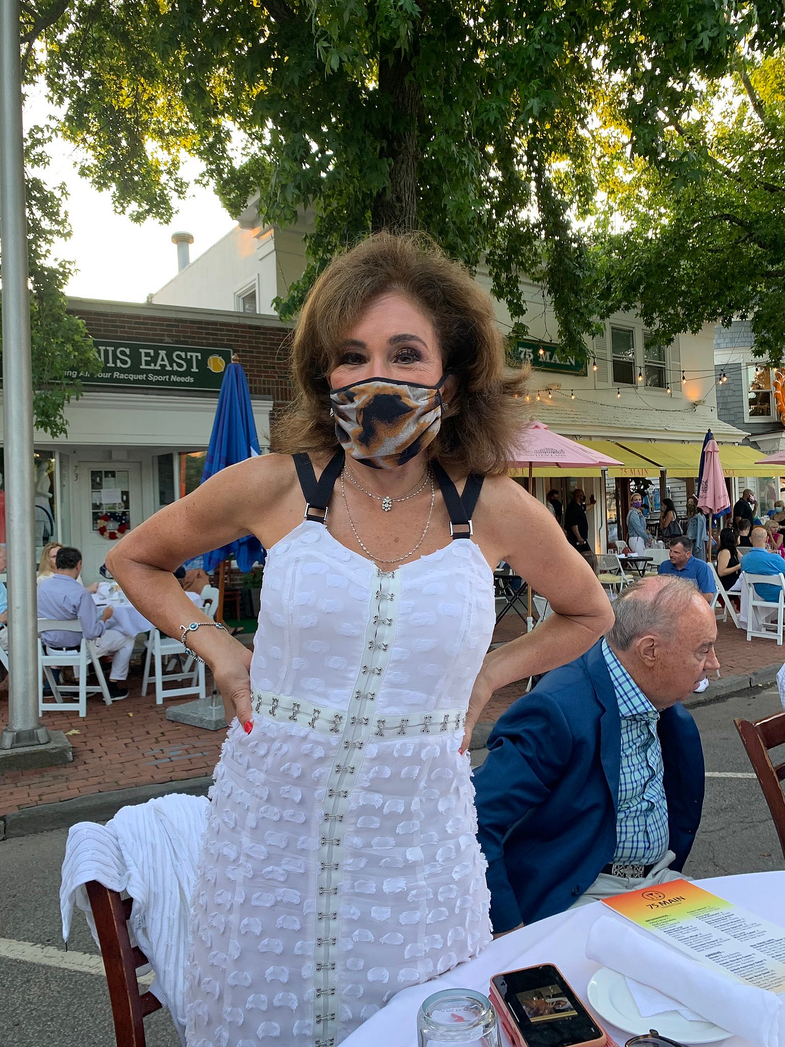 It’s pretty hard to miss but if you zoom in on Pirro’s phone it has Teigen’s topless sunburn pic on the screen. Judge Jeanine captioned her photo, “Wearing my mask out east,” but it didn’t take long for Chrissy to respond.