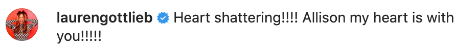 “Heart shattering!!!! Allison my heart is with you!!!” another wrote.