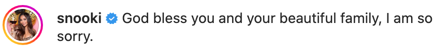 His “Jersey Shore” co-star Nicole “Snooki” Polizzi commented on his wife, Allison Holker’s, recent IG post, “God bless you and your beautiful family, I am so sorry.”