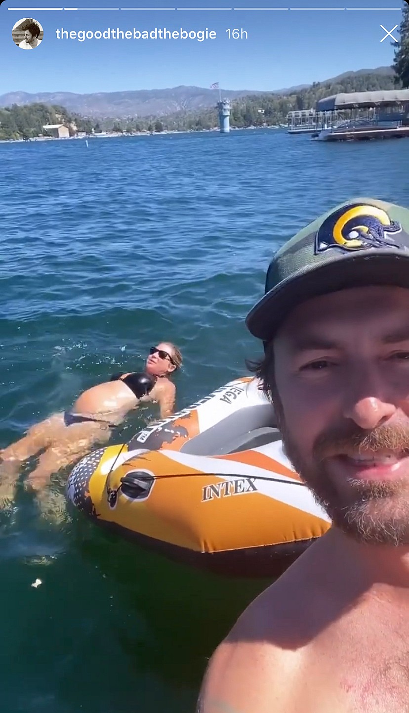 Stassi Schroeder and Beau Clark traveled to Lake Arrowhead, California over the weekend and while there, Beau shared a number of photos of Stassi showing off her growing baby bump in a blue bikini.