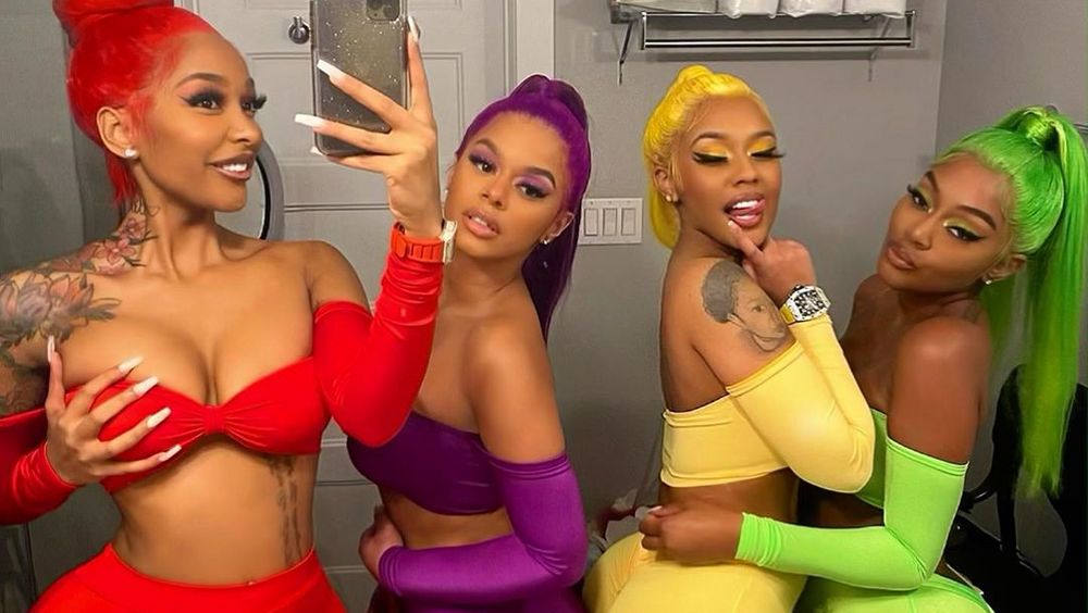 Scroll for Jade’s photos today. The star, followed by 1.5 million on her Instagram, had updated with a shout-out to 6ix9ine’s trademark multicolor look. Alongside a girl gang – and not dissimilar to the bikini-clad action in “PUNANI” – Jade has been in her teeny tiny swimwear for a new music video.