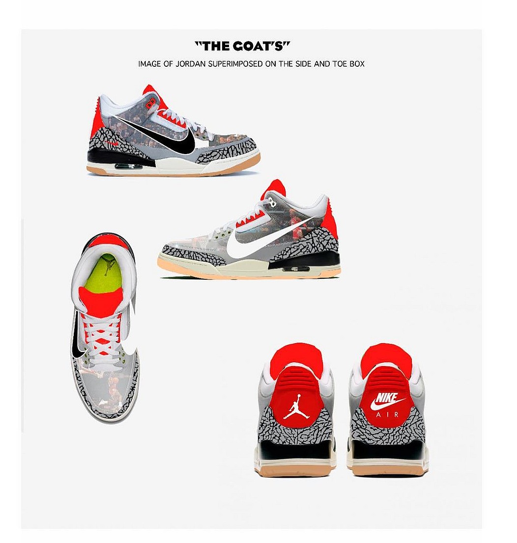 ‘The Goats’ are a red, black, white, design which obviously pays homage to some of the original ‘Air Jordan’ shoes, and CB says it comes with a picture of Michael Jordan dunking ‘superimposed on the side and the toe.’
