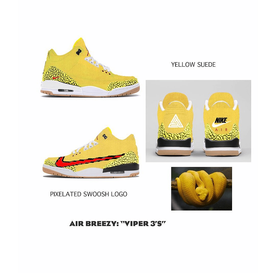 See The Other Designs Below. The other awesome looking pair of sneakers is an all yellow ‘suede’ design that Brown calls the “Viper 3” and it comes decked out with a pixilated red swoosh on the side. You gotta see this unreal style.