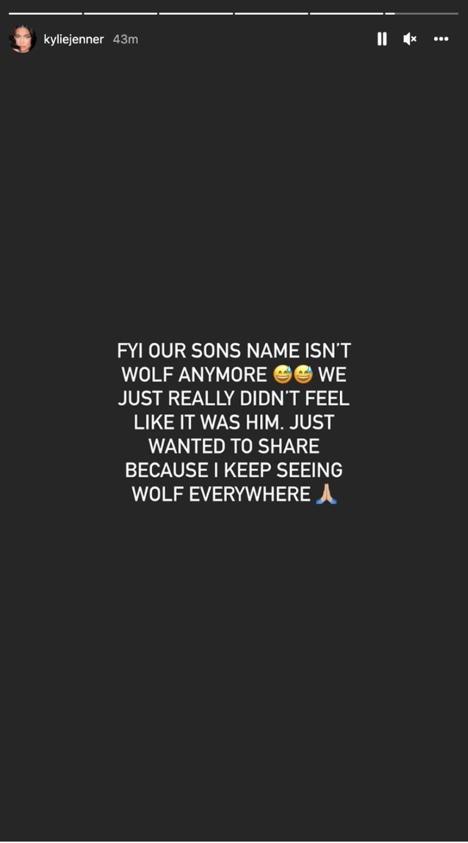 In an Instagram Story she wrote, “FYI OUR SONS NAME ISN’T WOLF ANYMORE 😅😅 WE JUST REALLY DIDN’T FEEL LIKE IT WAS HIM. JUST WANTED TO SHARE BECAUSE I KEEP SEEING WOLF EVERYWHERE 🙏🏻.”