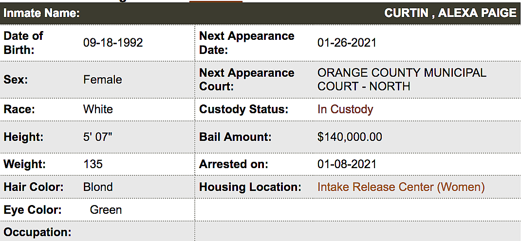 “Real Housewives of Orange County” star Alexa Curtin is back in custody after being a fugitive for over a year.