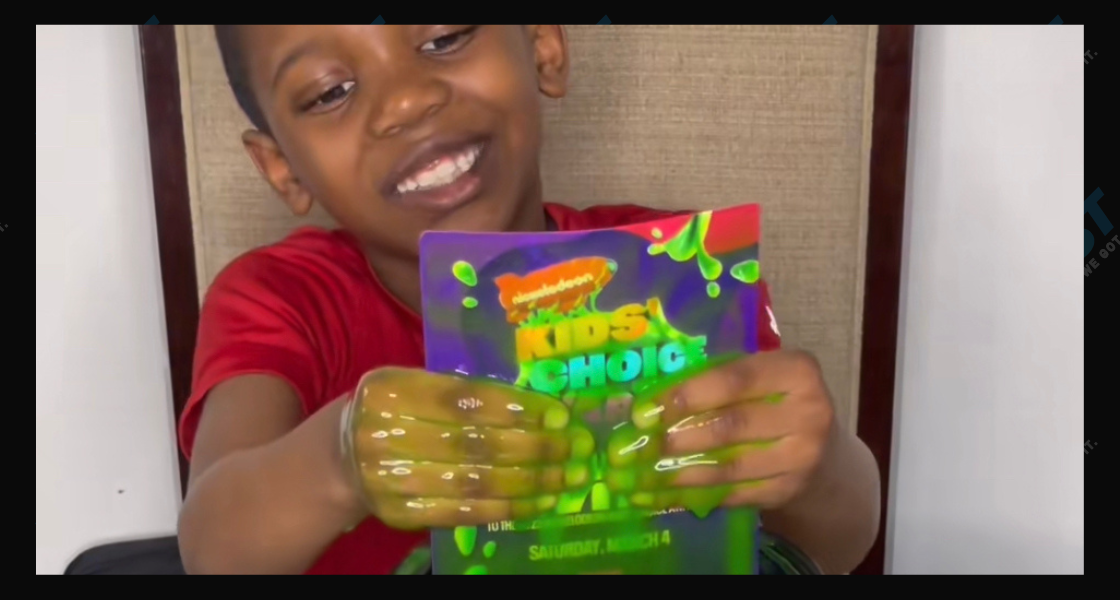 “It’s saying, ‘Your wildest dreams have come true. Open the can and reach in for the slime of your life,'” he said. He then stuck his hand into the can of green slime and pulled out an invitation for the 2023 Kids’ Choice Awards as he screamed in excitement.