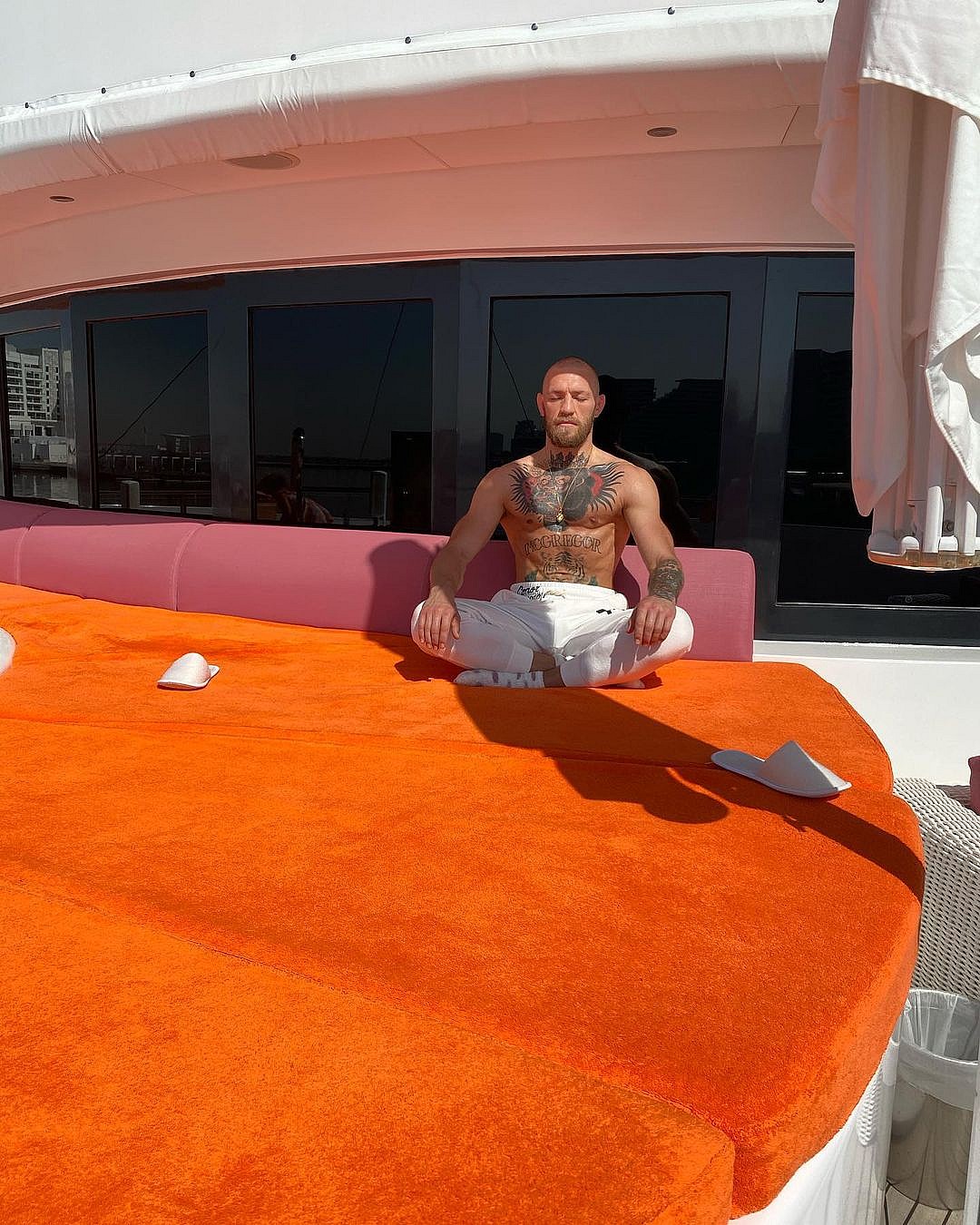 In the days leading up to the fight, Conor began sharing pictures from a huge boat, which he appeared to be staying on leading up to the event. The fight, which took place at Etihad Stadium in Abu Dhabi, was moved based on the outbreak of COVID-19.