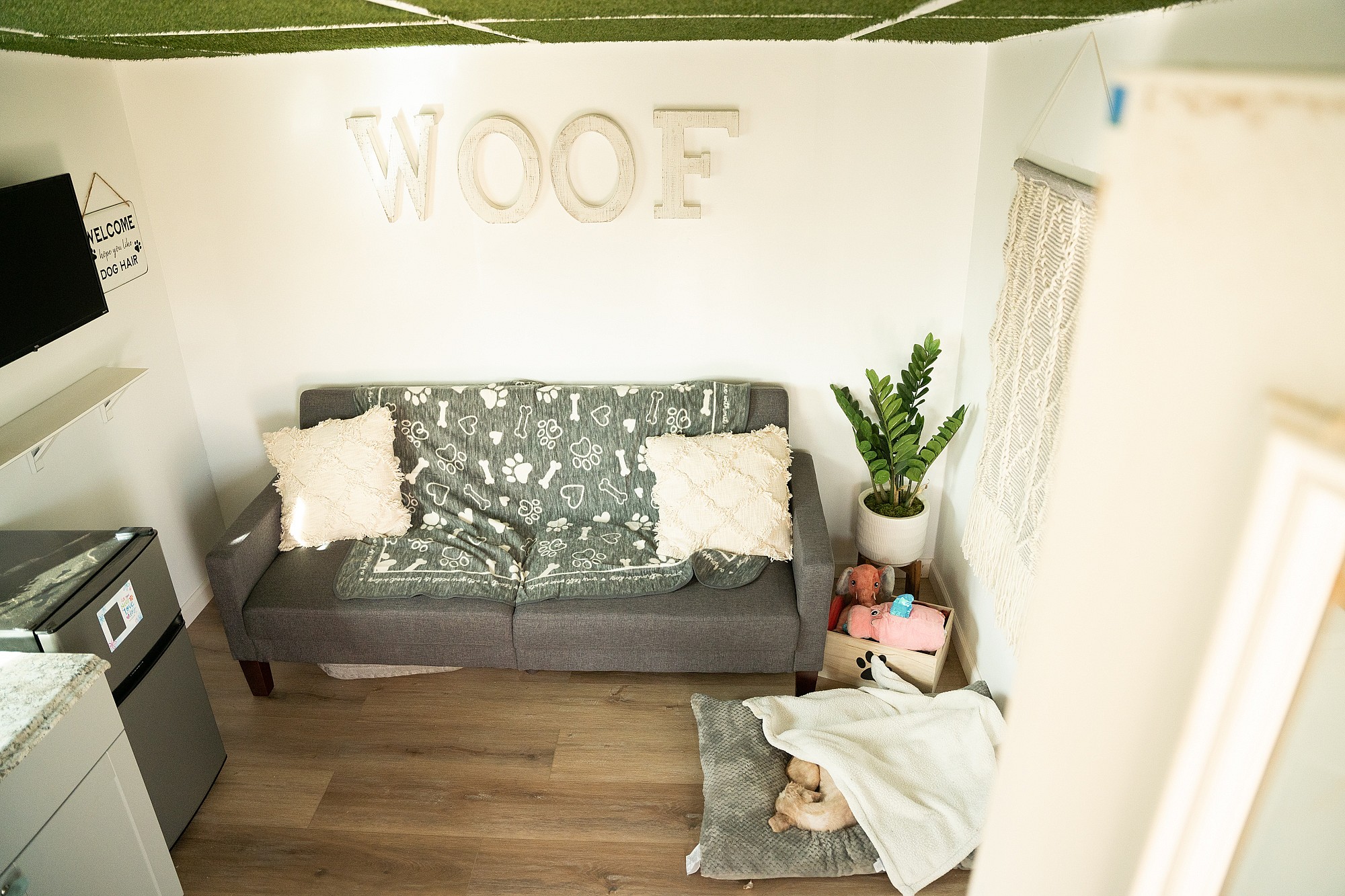 We’re told this tiny home is designed specifically for a senior hospice pup and a caring volunteer. In the safety of the tiny home, the senior pup will receive 24/7 medical care, comfort, and love through his final days. The home is designed specifically for 1 senior hospice pup and a caring volunteer.
