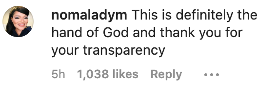 “This is definitely the hand of God and thank you for your transparency,” one fan noted.