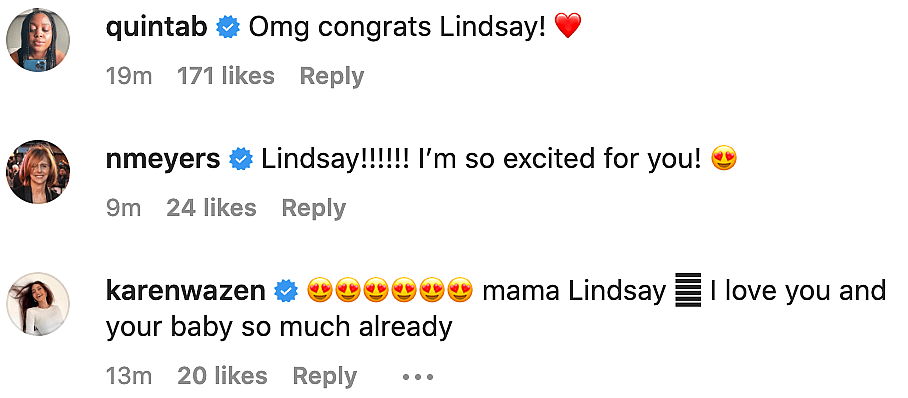 “Twilight” creator Nancy Meyers added, “Lindsay!!!!! I’m so excited for you! 😍”