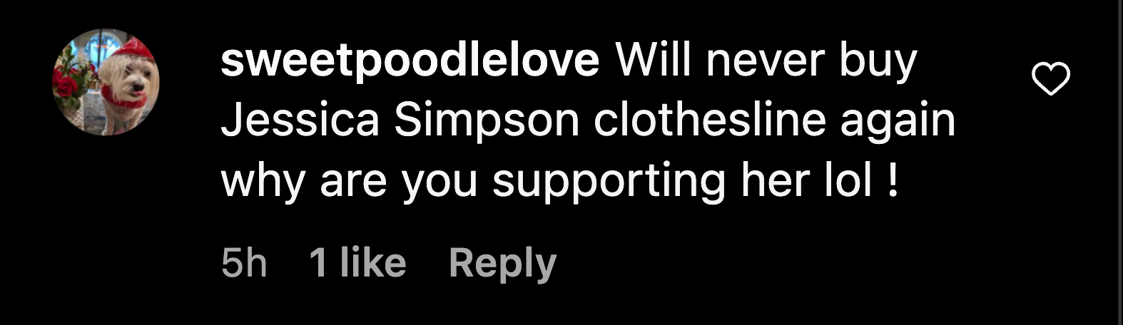 Although the post received over 15,000 likes, the comment section criticized the entertainer’s connection to the shapewear founder. “Will never buy Jessica Simpson clothesline again. Why are you supporting her? Lol!” a disappointed fan lamented.
