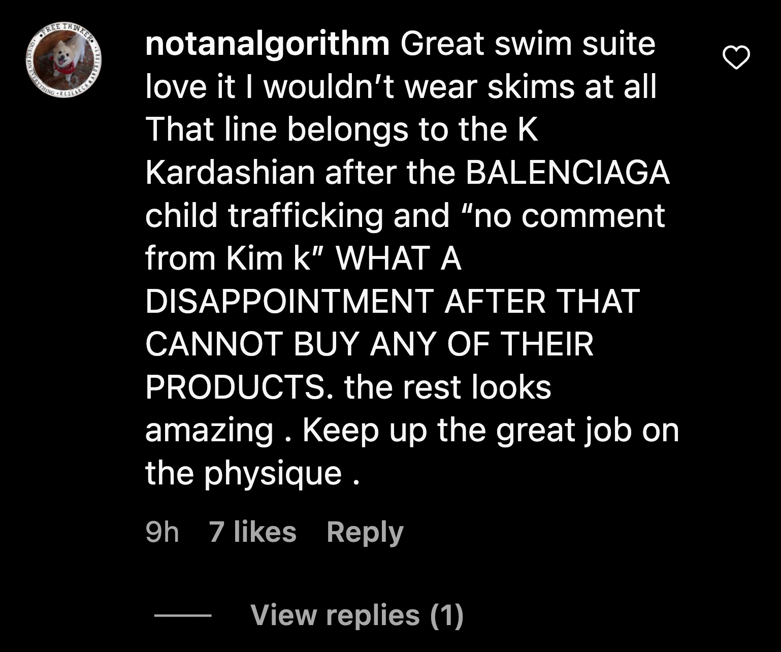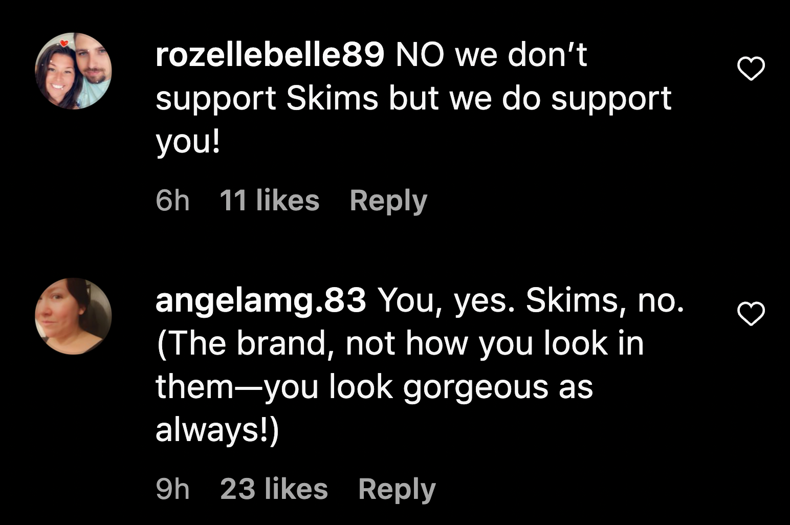 Another person explained why the majority were against “The Dukes of Hazzard” star’s post. “Great swim suite [sic], love it. I wouldn’t wear Skims at all. That line belongs to the K Kardashian,” the individual began.