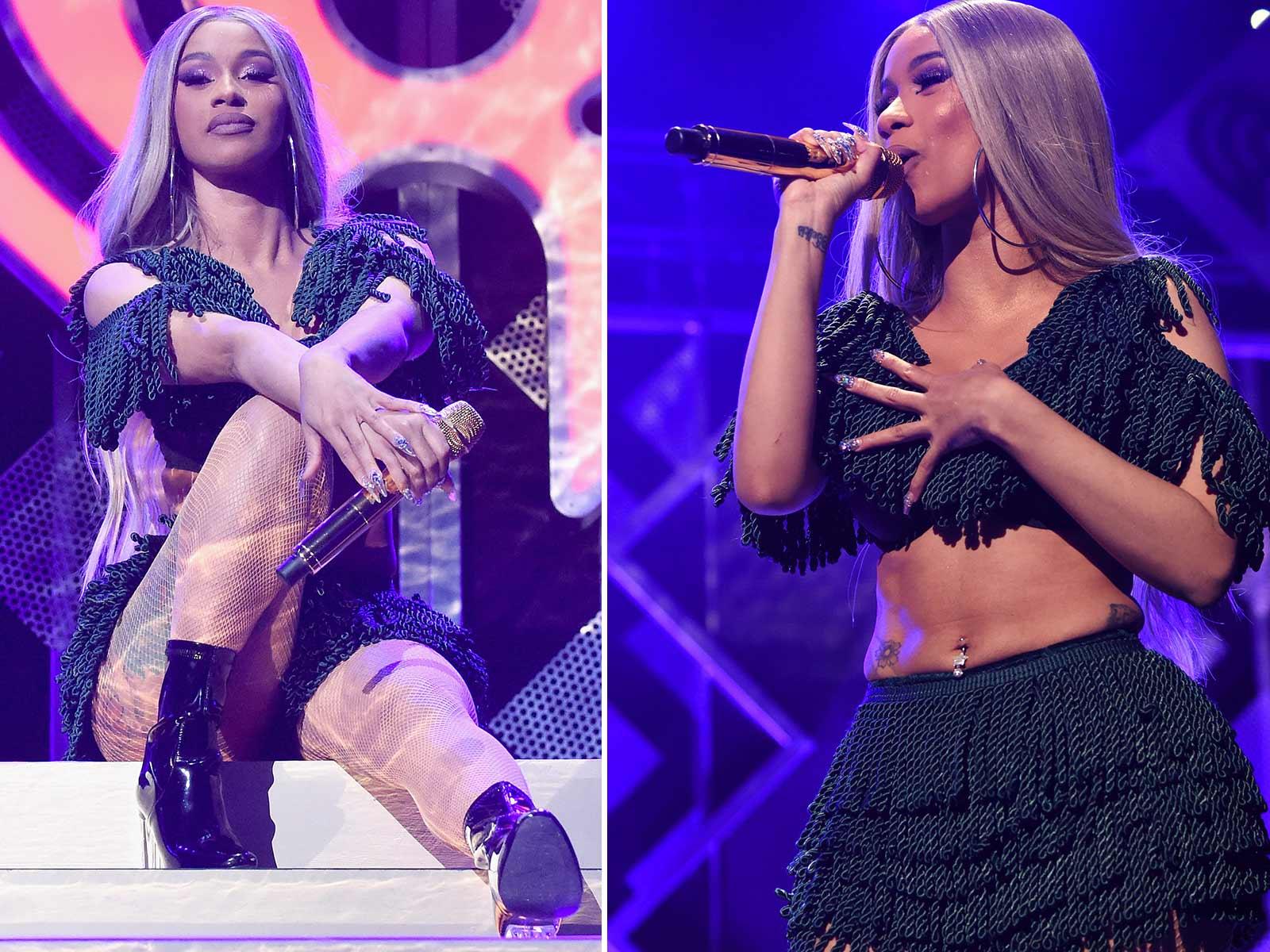 The “Money” rapper flaunted her toned body in a tight two-piece Friday night during the show in New York. Ditching the rainbow ‘do she’s been sporting lately, Cardi looked ready to take on the world.