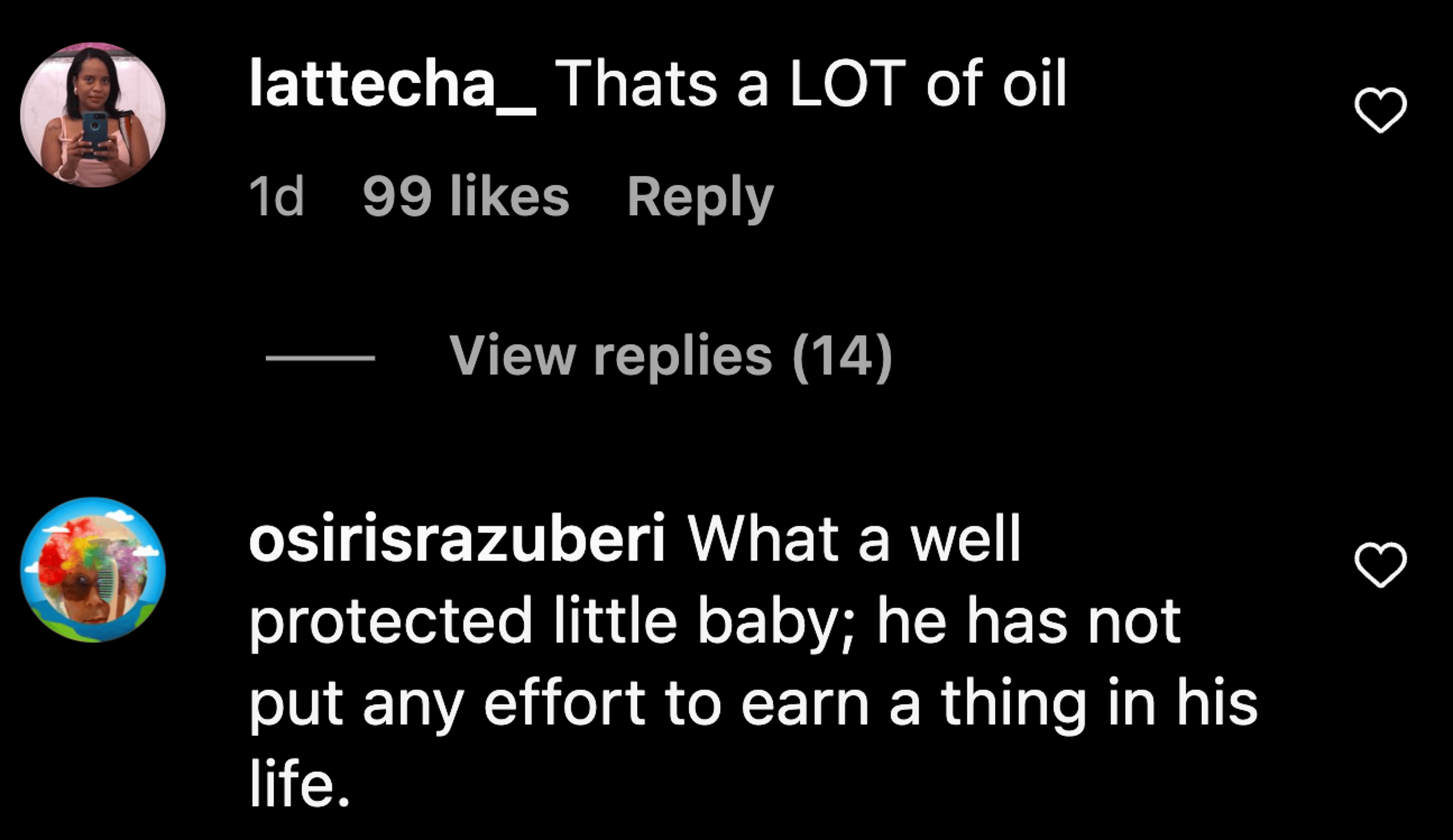 “That’s a LOT of oil,” someone pointed out, with another blaming the media personality’s great recipe on his background. “What a well-protected baby; he has not put any effort into earning a thing in his life,” the critic chimed.